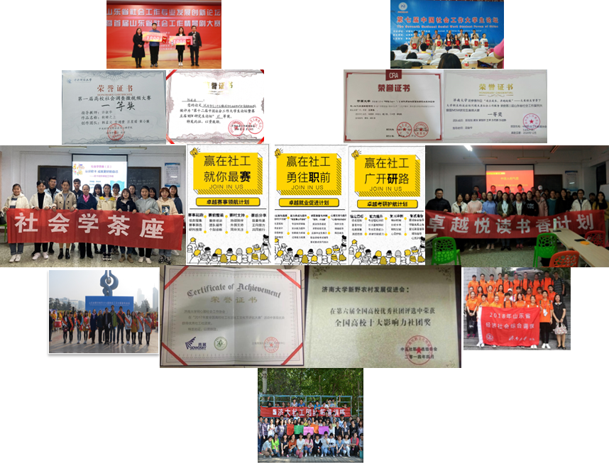 图3 “456”卓越社会工作师人才培养模式部分课外活动及成就