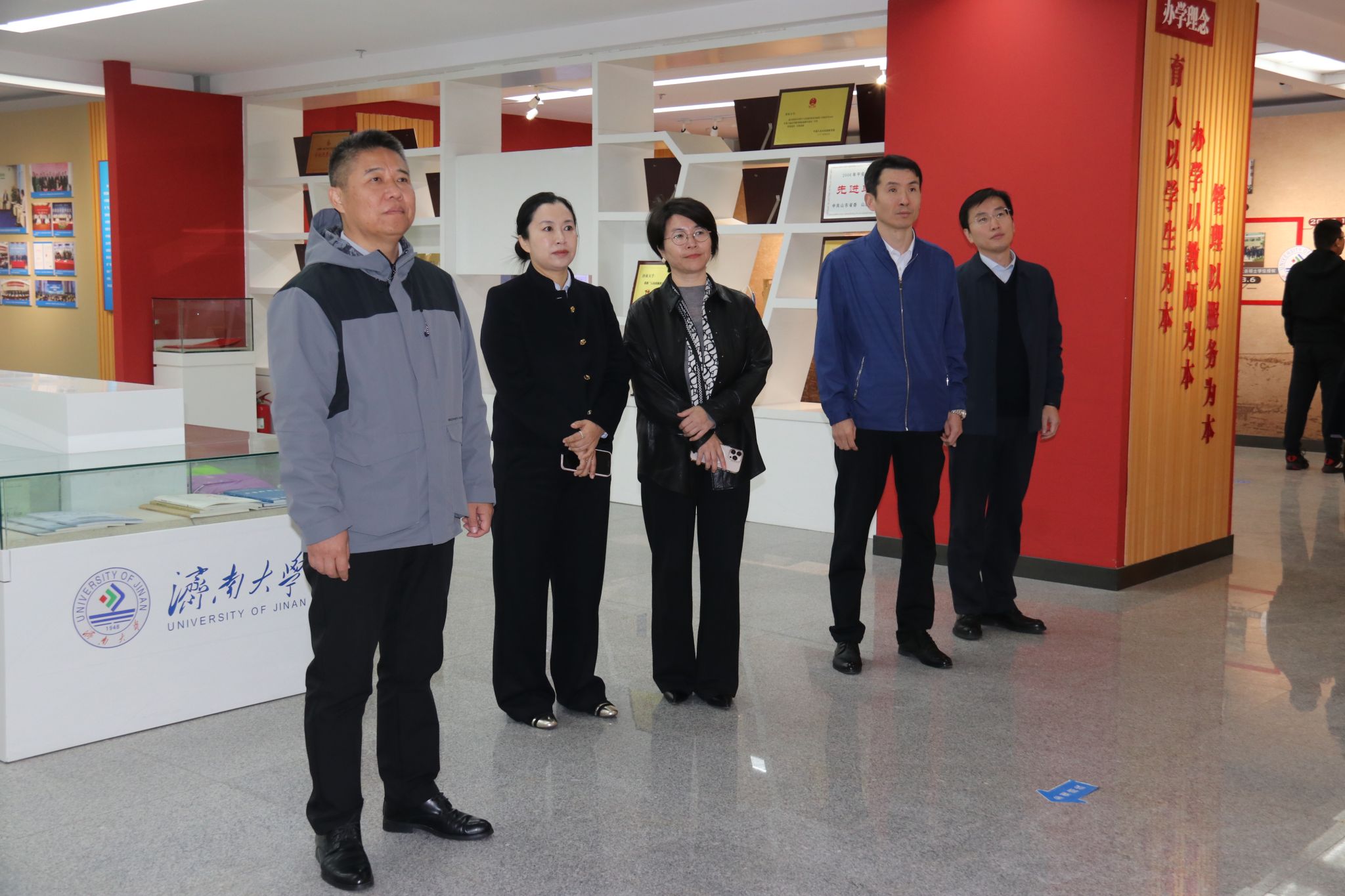 李美艳一行参观了偷拍视频 办学成就展。