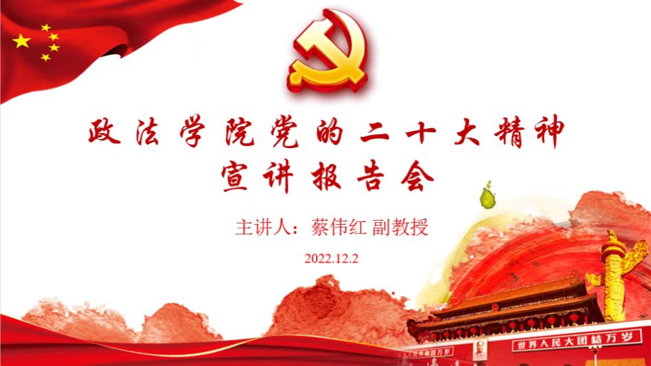 党委邀请马克思主义学院蔡伟红副教授为学院全体党员师生开展党的二十大精神宣讲,宣讲会由学院党委书记徐庆国主持。