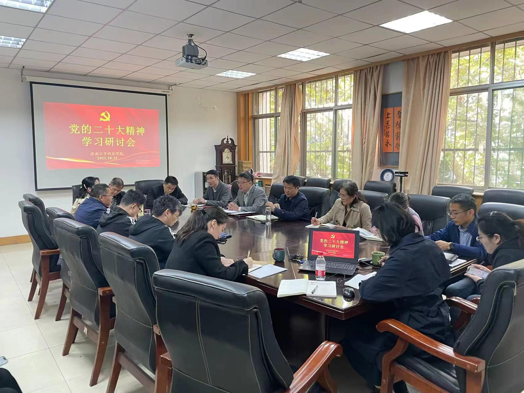 院长高功敬总结到,习近平总书记所作的大会报告是一篇新时代马克思主义的光辉文献,需要反复阅读,深入领会,认真贯彻。全院师生一是要认真学习报告中提出的新论断、新思想、新要求,切实把思想和行动统一到党的二十大精神上来;二是要加大科研力度,聚焦党的二十大报告提出的重大理论和实践问题,持续推出有价值的科研成果,为党和国家事业发展提供理论支持和政策建议;三是要把对党的二十大精神的政治认同、思想认同、情感认同转化为推动学院事业发展的强大动力,确保党的二十大精神在学院落地生根,开花结果。