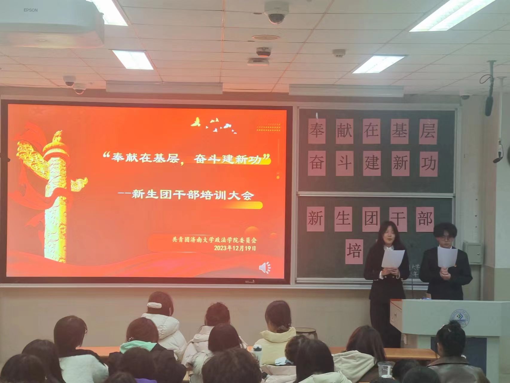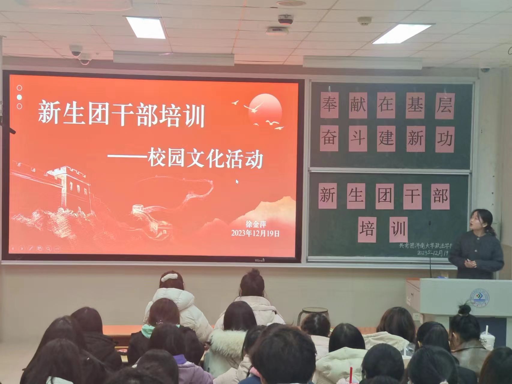 学生会在11j1-202教室开展“奉献在基层,奋斗建新功”2023年新生团干部培训活动。