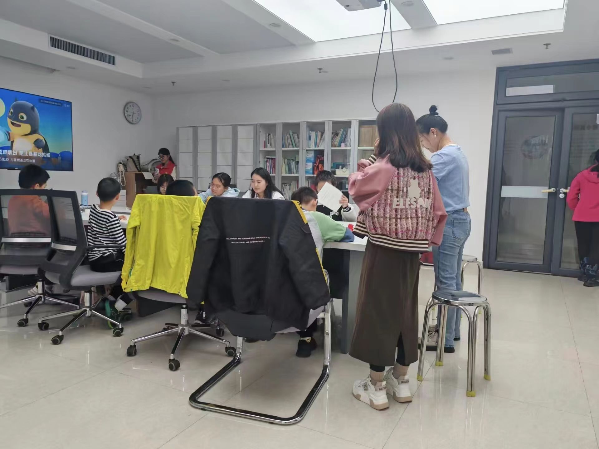活动伊始,为了让孩子们能够更好地参与到桌游活动中,老师以视频与幻灯片结合的方式,通过三个形象的成语向孩子们分别介绍了白骨精和六耳猕猴,以生动的讲解激发了孩子们的兴趣。和孩子们讲解完桌游基本规则后,老师和志愿者负责分发卡牌和勾玉,孩子们负责描述自己的成语,在一片欢声笑语中,桌游活动顺利进行。通过对成语的理解和情境化表达,孩子们的语言描述和交流沟通能力得到了锻炼。志愿者认真负责,深度参与到桌游活动之中,与孩子们进行许多有趣的互动。孩子们活泼可爱,活动室里洋溢着一派轻松愉悦的氛围。