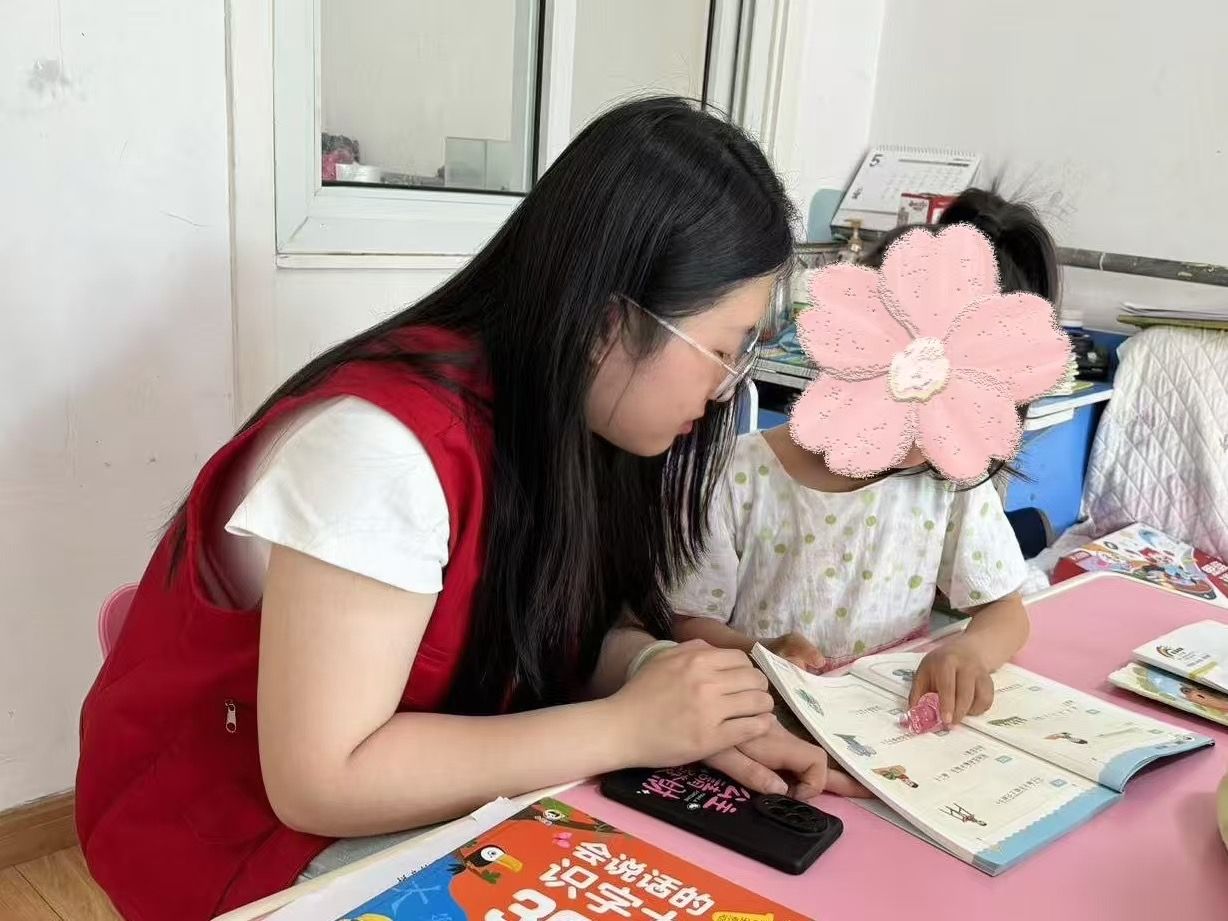 在首次服务建立信任关系的基础上,实习生结合服务对象特点,精心策划了多元介入活动。在服务过程中,实习生通过赠送贴纸礼物破冰互动,迅速拉近与服务对象的距离;借助有声绘本开展点读共学,引导其模仿“翻滚”“跳跃”等动作词汇,激发语言表达欲望;设计摆积木、磁吸玩具角色扮演等益智游戏,融入思维训练与简单交流任务。服务对象在活动中专注参与,尝试用词汇和肢体语言表达需求,并在任务成功后展露自信笑容。其母亲全程陪伴支持,对社工的专业服务给予高度评价。