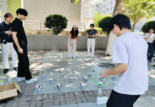 活动现场热闹非凡。新颖的形式吸引了同学们积极参与,首先,同学们通过妙趣横生的对对碰游戏获得一定数量的游戏圈,游戏圈大小不一、颜色各异,参与者需辨别不同颜色杯子并两两配对,倒扣的彩色杯子下藏着未知的惊喜,参与者翻找配对。现场惊呼声与欢笑声不断。随后,参与者根据对对碰环节的被子的配对数量兑换用于套圈的圆环,套圈活动现场十分火热,现场摆满琳琅满目的奖品,从可爱玩偶到小巧盆栽,让人目不暇接,参与者通过累计套圈套中的次数获得相应照片线索,在校园中寻找“宝藏”卡片,并兑换相应礼物。在这场充满趣味性的活动中,大家收获惊喜与欢乐,为参与者带来了难忘的沉浸式体验。