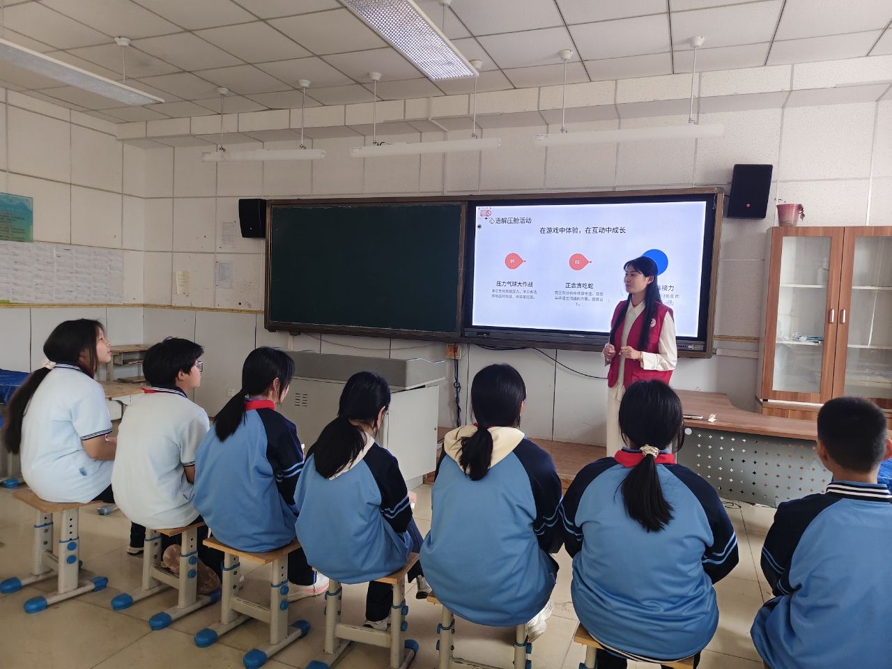 在朋辈支持中,最让志愿者感到无措的往往是面对较为严重的情绪困扰时,不知如何妥善应对。为此,实习生们重点围绕应对与支持策略、危机识别与转介两大核心内容,为小志愿者搭建起清晰、可操作的行动框架。实习生通过案例分析,帮助学生识别哪些情况属于需要陪伴的日常情绪波动,哪些信号可能预示着更深层次的心理危机,并明确在危机情境下要第一时间告知驻校社工或老师,不擅自处理,也不承诺保密。同时,党家街道社工站还向小志愿者系统介绍了学校现有的心语解压舱、向阳能量站等情绪支持活动资源,引导他们主动将需要帮助的同学引向专业支持渠道,成为校园支持网络中的关键纽带。通过培训,小志愿者不仅掌握了初步支持的方法,更明确了自身在校园支持网络中的定位,既是温暖的陪伴者,也是专业资源的重要传递者。