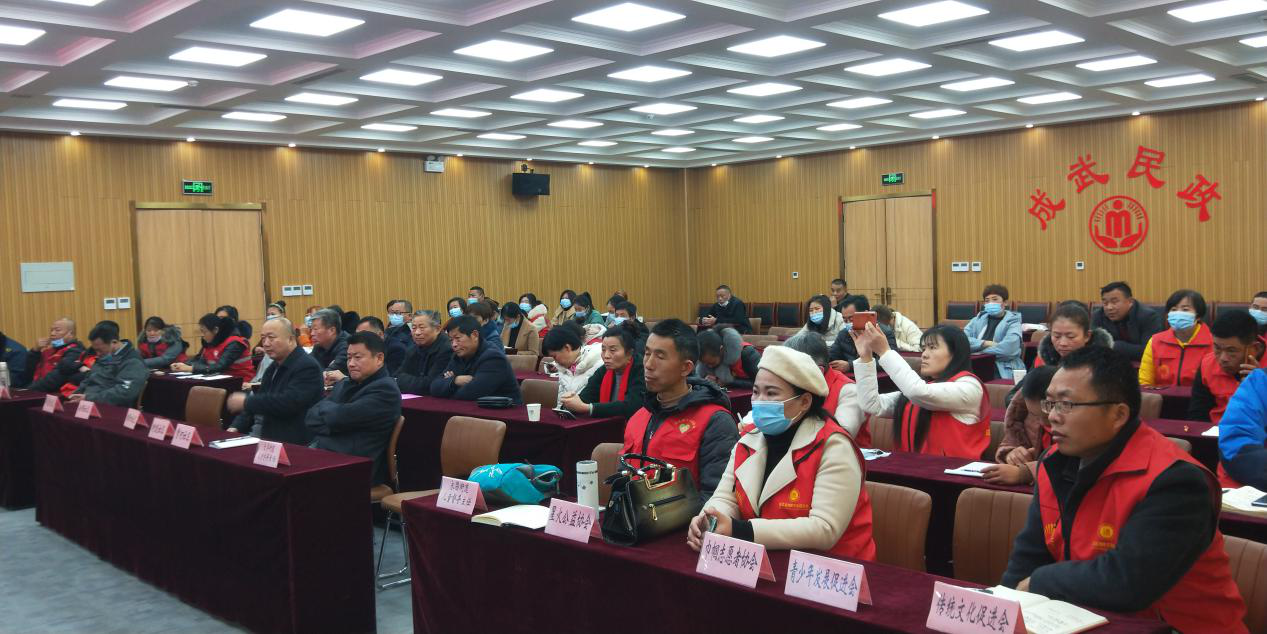 与成武县民政局在县社会福利中心联合举办社会工作教育培训会。参会人员为县民政局全体同志、各社会组织法人(负责人、财务人员、一线工作者)、社工及志愿者、城乡儿童督导和儿童主任、城乡社区工作者,总计100余人。