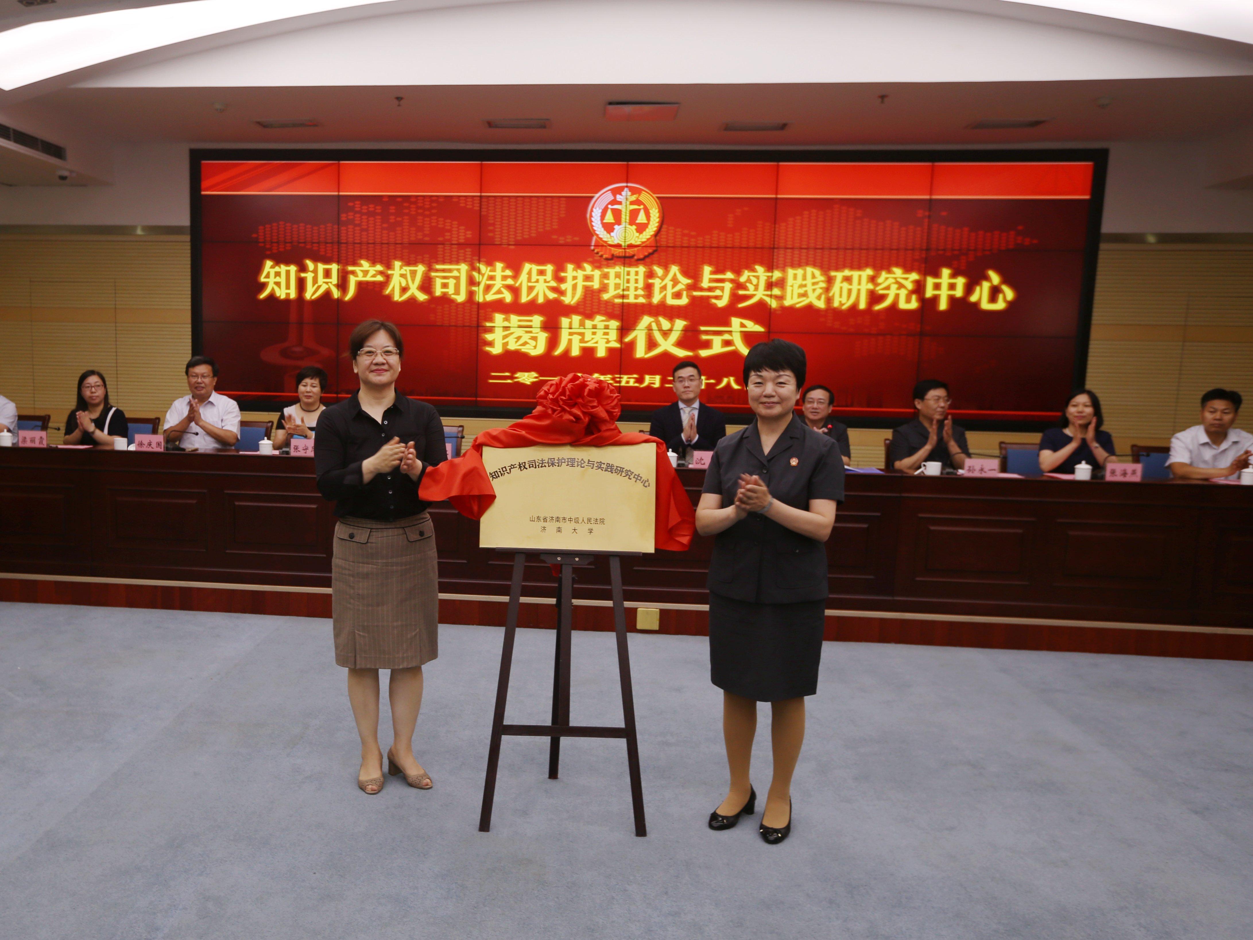 知识产权司法保护理论与实践研究中心是济南市中级人民法院与我校合作设立的一个研究平台。2018年5月28日在济南市中级人民法院举行了签约揭牌仪式。